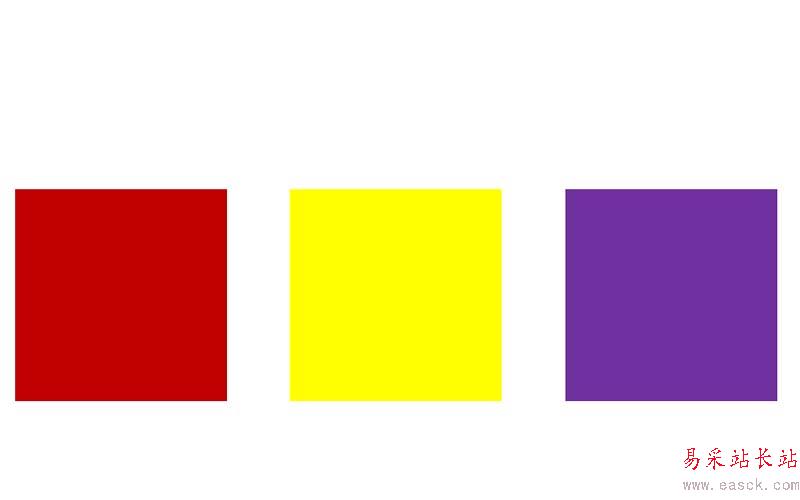 4、依次修改三個(gè)正方形的形狀填充為紅色、黃色、藍(lán)色,并設(shè)置形狀輪廓為無(wú)。