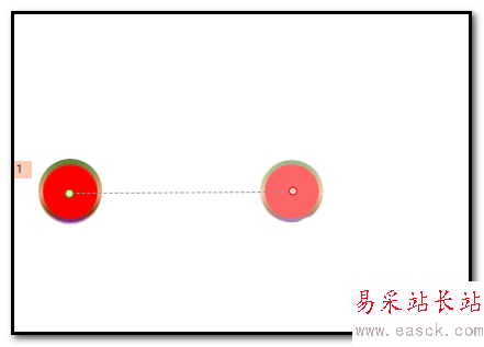 1、舉例演示操作方法,比如,圖中有一個紅色圓;現在需要此圓滾向右邊。