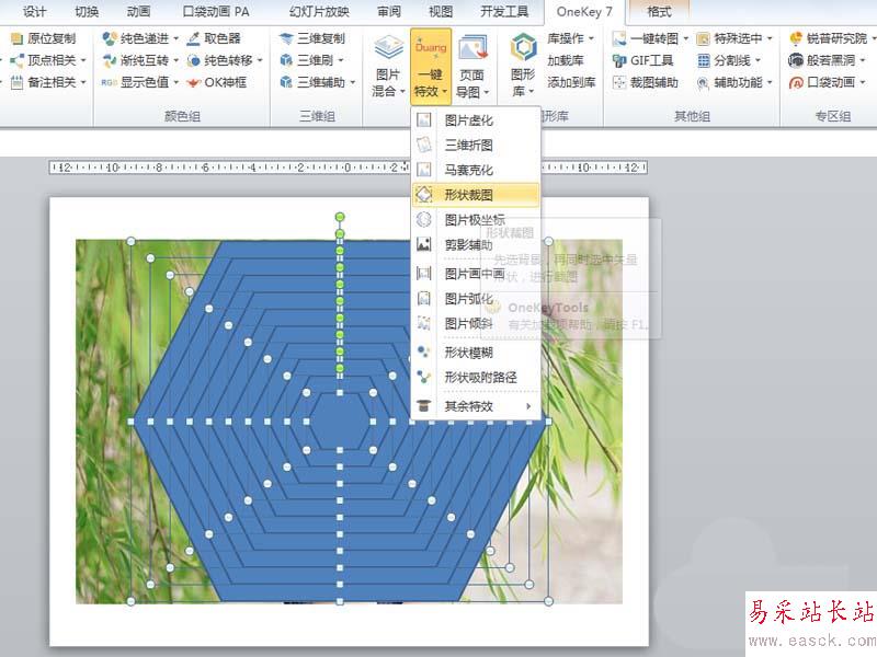 6、執(zhí)行ctrl+a組合鍵進行全選,執(zhí)行一鍵特效-形狀裁圖命令,接著刪除圖片。