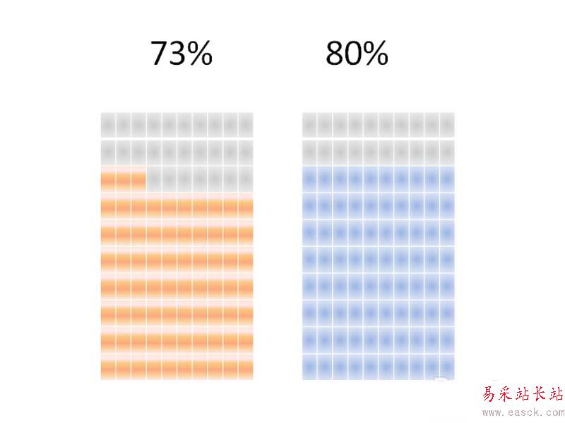 6、使用復(fù)雜的方法制作其他圖表,并修改相應(yīng)的百分比數(shù)字。
