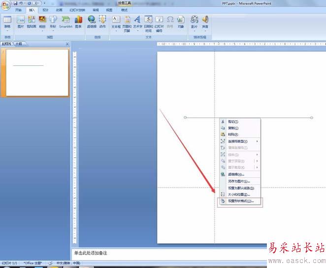 4、右鍵直線,選擇設(shè)置形狀格式。