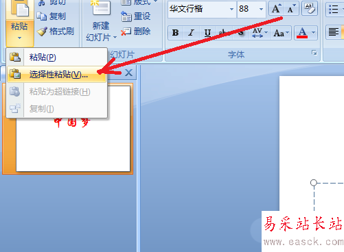 3、第一種顏色設置完成后,我們選中并復制“中國夢”這三個字,再點左上角的粘貼---->"選擇性粘貼“。