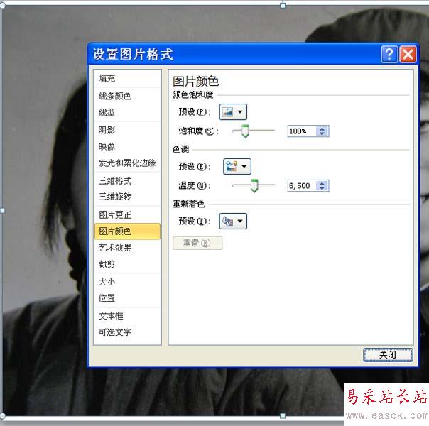 2、執行格式-顏色命令,從中選擇圖片顏色選項,彈出設置圖片格式對話框。
