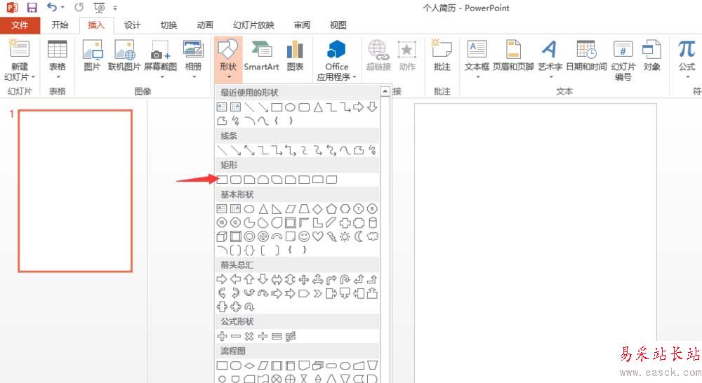4、下面開始制圖,首先填一個背景,在插入——形狀中選擇矩形,填充為黑色。拉到頁面的大小即可。