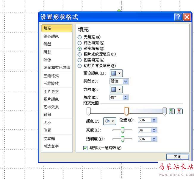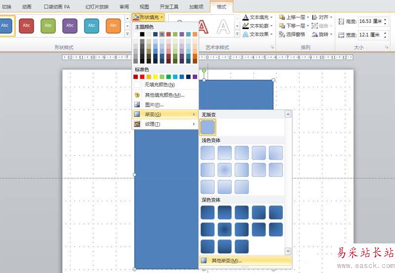 3、執行格式菜單,設置形狀填充為漸變填充,選擇其他漸變填充。