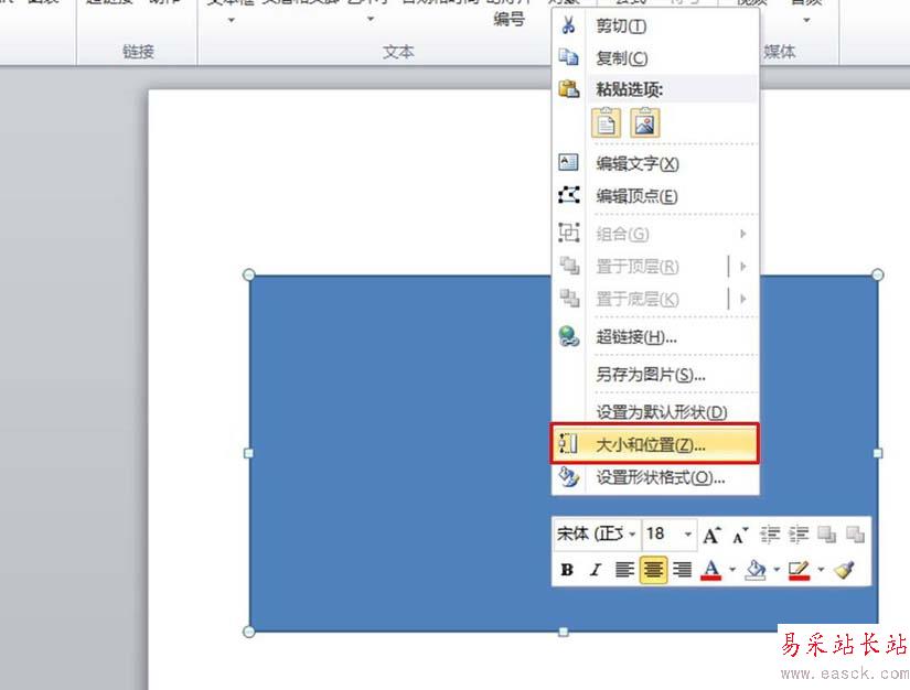 1、單擊鼠標左鍵,選中圖形,然后單擊鼠標右鍵,在列表中選擇大小和位置。