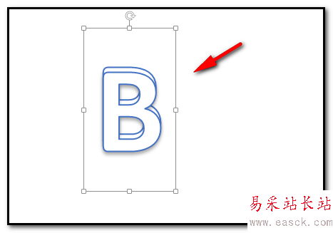 2、選擇藝術字樣式后,內容區上顯出一個文本框,我們在框內輸入目標文字,比如,B,調節字體大小