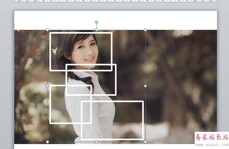 5、按住shift鍵選擇四個(gè)矩形,執(zhí)行ctrl+g組合,使他們組合在一起。
