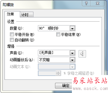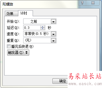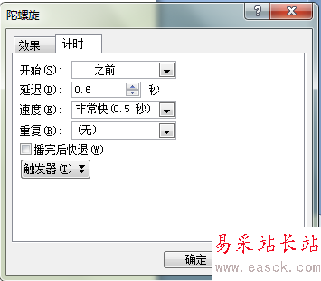 5、設置2、3、4號方塊動畫效果。2號方塊動畫效果設置如下動畫/添加效果/強調/陀螺旋,效果選項:從上一項之前開始,非???,順時針旋轉70度,延時0.3秒。3號方塊動畫效果設置如下動畫/添加效果/強調/陀螺旋,效果選項:從上一項之前開始,非常快,順時針旋轉70度,延時0.6秒。4號方塊動畫效果設置如下動畫/添加效果/強調/陀螺旋,效果選項:從上一項之前開始,非常快,順時針旋轉90度,延時0.9秒。