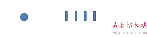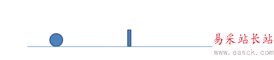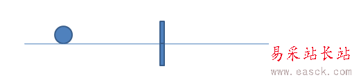 1、打開PPT2007,插入一個小圓,一個長方形方塊和一條直線,直線用來使圓和方塊在同一水平線上。