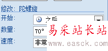 4、設置1號方塊動畫效果,選中1號方塊,選擇動畫/添加效果/強調/陀螺旋,設置為上一項之后開始,自定義轉動角度順時針70度(輸入70度后按回車鍵,不按回車還是默認轉動角度,角度大小可根據動畫效果調整。)速度設置為非???。
