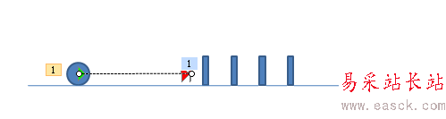 3、設置圓的動畫效果,選中圓選擇動畫/添加效果/動作路徑/向右,調整路徑使圓動作結束時剛好碰到1號方塊。