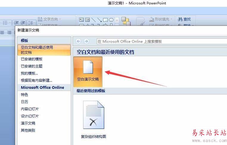 1、首先,我們打開Microsoft Office PowerPoint 2007,新建一個空白文檔,如圖所示: