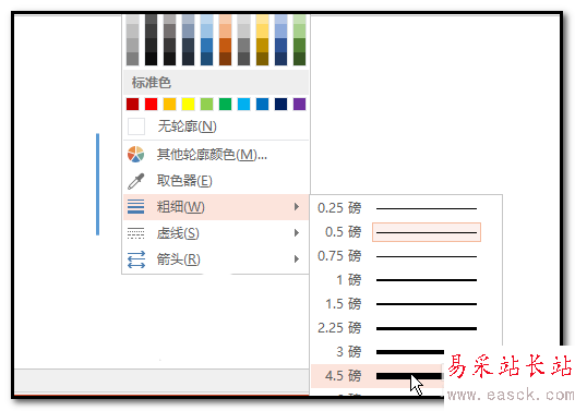 4、彈出的列表中,鼠標放在“粗細”這里,右側彈出列表,再選擇自己中意的線條樣式。