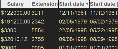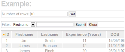 sortable table ——演示了如何按升序或降序排列以及如何過濾顯示表格中的數據。