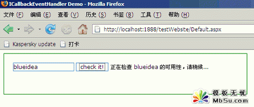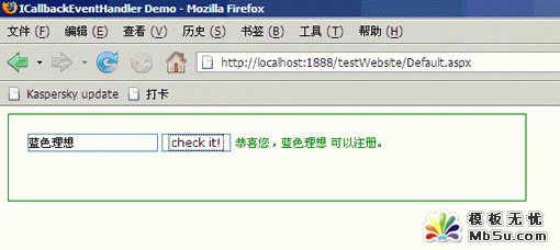 上面有一個<input type="button" value="check it!" onclick="callServer()" />,這是我說的第5步的內容,這個函數名字callServer應該和Lage_Load中注冊的相對應的。