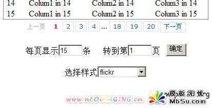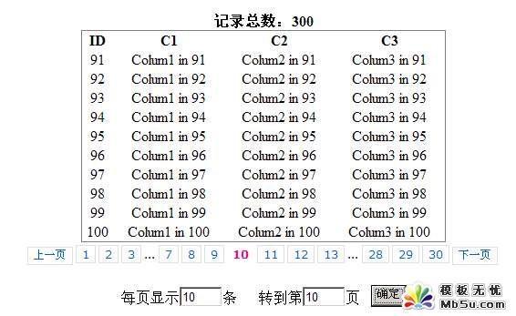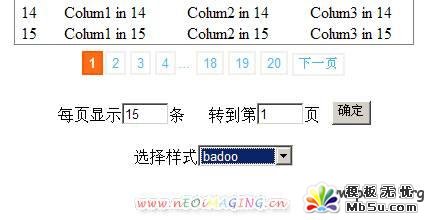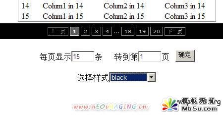 下面我們升級(jí)一下,可以自定義沒頁顯示得條數(shù)和跳至的頁碼: