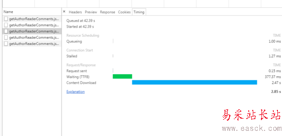 開發人員反饋給我一個bug,ajax相應速度很慢,經過定位,速度慢的原因在于,content-download時間過長,在chrome中有2s+的延遲,后證實在我們的手機客戶端里也有這一延遲。截圖如下: