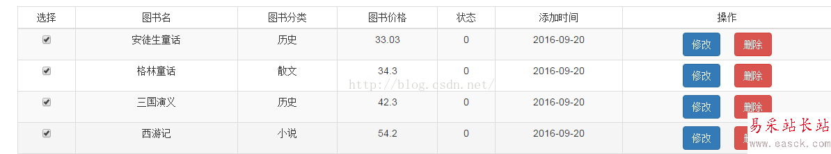 <span style="font-family:SimSun;font-size: 10.5pt;"> </span><span style="font-family:KaiTi_GB2312;font-size:14px;"> @RequestMapping("selectdelbooks") public String selectdelbooks(HttpServletRequest request) throws Exception { ServletInputStream inputStream = request.getInputStream(); String mybooksid = IOUtils.toString(inputStream); JSONArray jsonarr = new JSONArray(mybooksid); List<String> book_id =new ArrayList<String>(); for (int i=0;i<jsonarr.length();i++){ book_id.add(((JSONObject)jsonarr.get(i)).getString("book_id")); }...</span> 這樣我們得到一個list,里面有我們選中的id值。