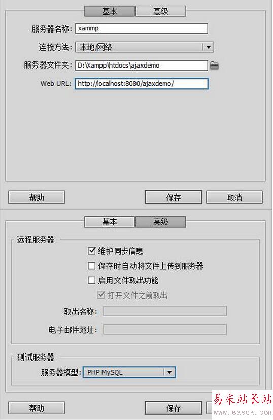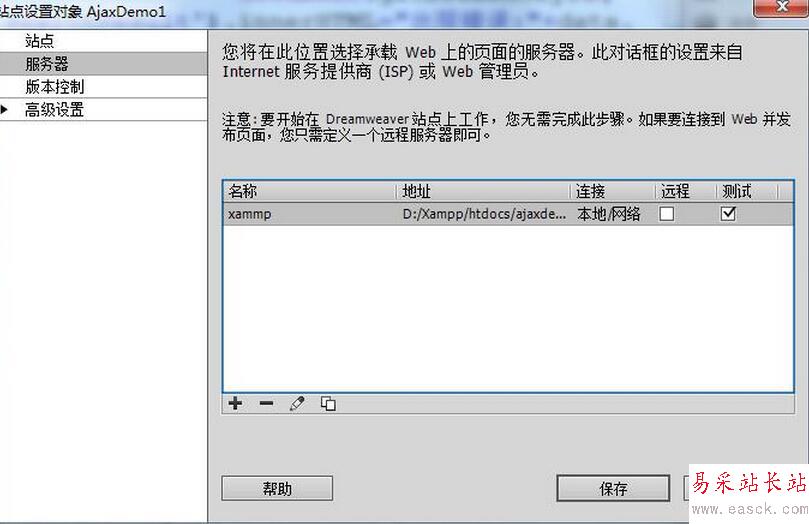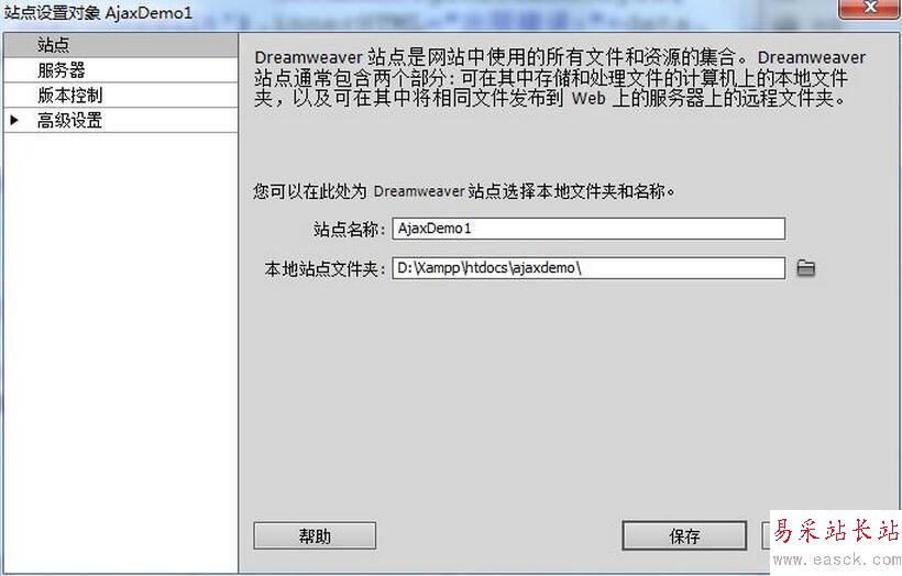 3.下面來打開Dreamweaver建一個服務(wù)器站點(diǎn)。站點(diǎn)配置:本地站點(diǎn)文件夾一定要選擇你裝Xampp路徑的htdocs的目錄里。