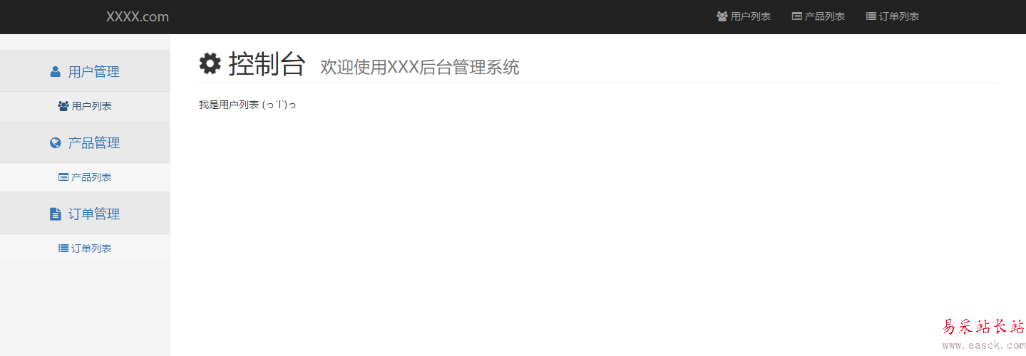 ②:點(diǎn)擊左側(cè) 用戶管理 標(biāo)簽下的 用戶列表 選項(xiàng)后,右邊默認(rèn)頁(yè)面內(nèi)容更新為用戶列表頁(yè)(userList.jsp)的內(nèi)容 :