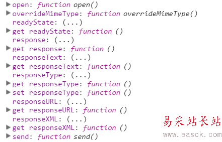 var request=createRequest();request.open("GET",url,true);request.onreadystatechange=showResponse;request.send(null);open,send方法均來自request對象的原型XMLHttpRequest,打開__proto__:XMLHttpRequest可看到: