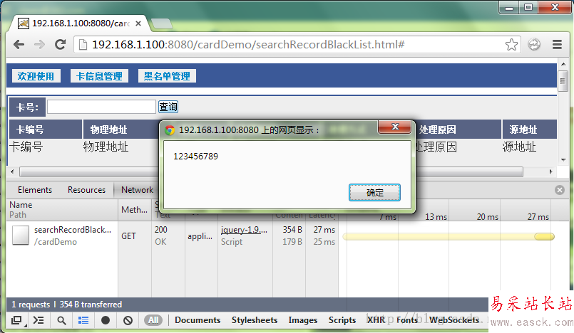第三張,使用我的本機IP訪問的時候192.168.1.100:8080/cardDemo/searchRecordBlackList.html#