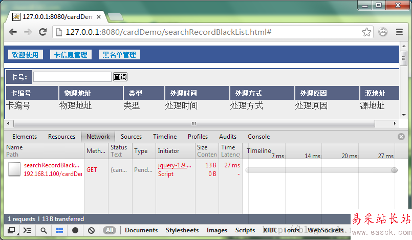 第二張,使用127.0.0.1:8080:8080/cardDemo/searchRecordBlackList.html#訪問的時候: