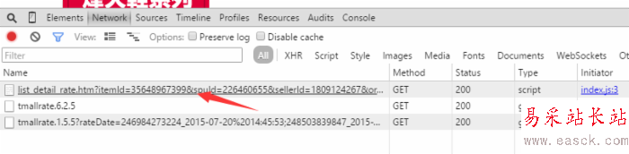 我們在用戶評論中,翻到底部 點擊下一頁或者第二頁,我們在Network中看到動態添加了幾項,我們選擇開頭為list_detail_rate.htm?itemId=35648967399的一項。