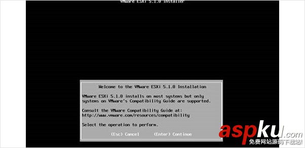 3、之后進入ESXi的歡迎界面,ESXi5.0能支持大部分的硬件系統,只有少部分的硬件不被支持。按“Enter”鍵繼續。如圖4