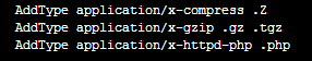 在 vi 編輯器中搜索“AddType application/x-compress .Z”