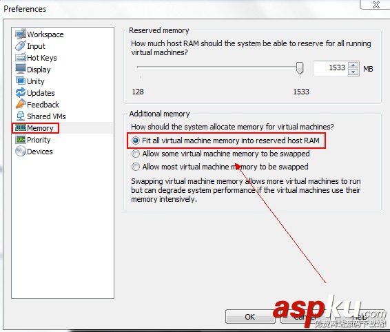 這步也是關鍵步驟之一,否則也會因為讀硬盤而導致虛擬機速度明顯下降(同時硬盤狂叫,讀硬盤是虛擬機速度慢的主要原因)。選中“Fit all virtual machinememory into reserved host RAM”。