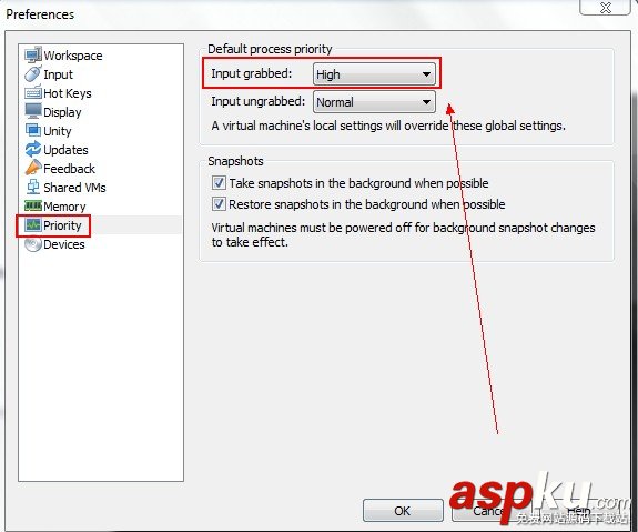 Inputgrabbed(同上):設置為high或者normal,我這里設置為high了。