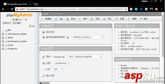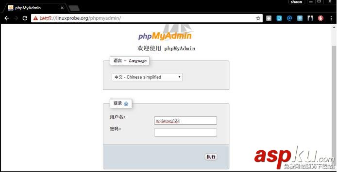 使用Web瀏覽器從客戶端訪問“http://(您的主機名或IP地址)/ phpmyadmin /',然后在MariaDB的用戶在以下屏幕上登錄。此示例使用root用戶繼續。