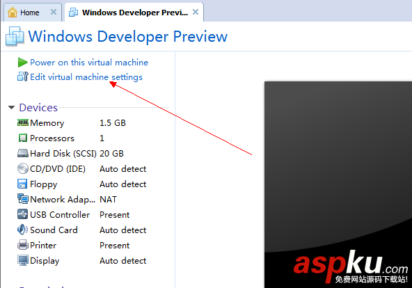 在左側列表點開這個虛擬機,單擊“Edit Virtual Machine Settings”