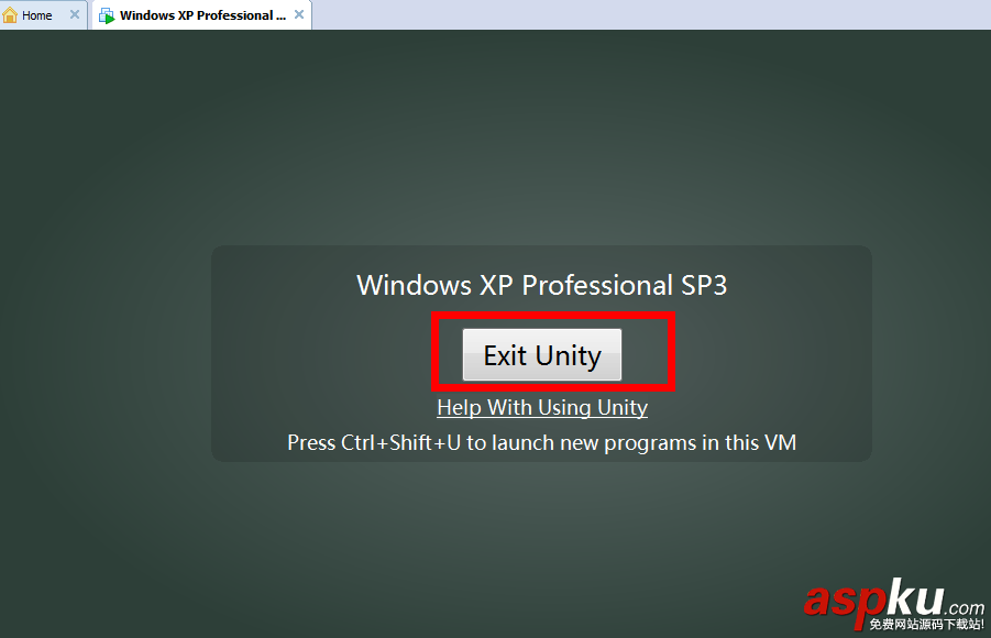 欲退出Unity模式,只需要在虛擬機窗口中單擊Exit Unity即可