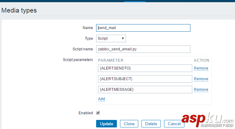 如果你用的zabbix3.0,請注意Administration –> Media types –> Create media type這一步的配置如下: