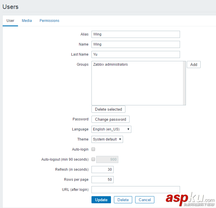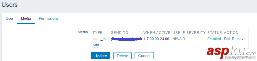 為新創建的user指定media:Administration –> Users –> Create user –> Media