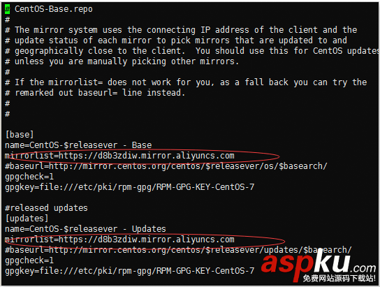 打開服務(wù)配置文件 vi /etc/yum.repos.d/CentOS-Base.repo