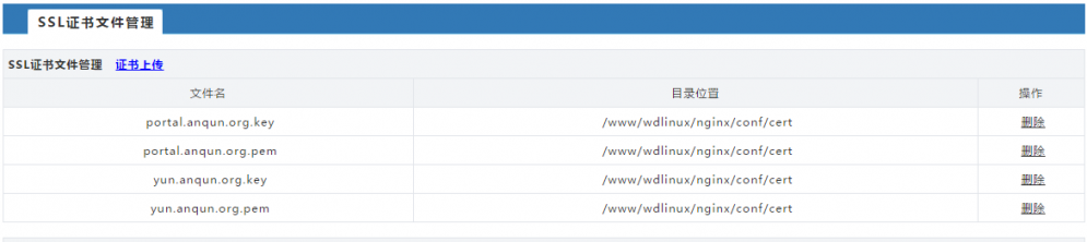 5. 如上傳成功,會在“SSL證書文件管理”里顯示