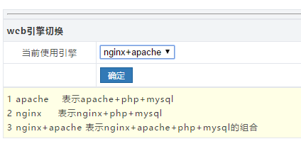 3. 登錄到wdcpd面板后臺,先確認一下Web引擎,當前顯示是默認的 nginx+apache