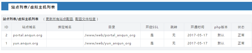 7. 本例,創建了兩個開啟SSL的站點