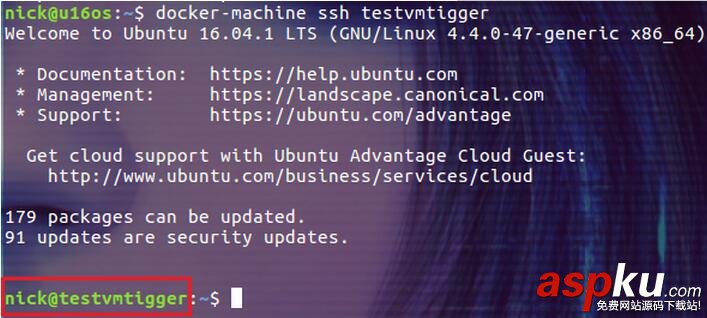 直接以用戶 nick 登錄成功了,其實 Docker Machine 已經(jīng)為這個用戶配置了通過秘鑰登錄的相關(guān)信息。