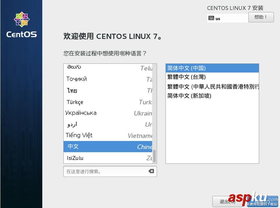然后會到以下選擇語言界面。