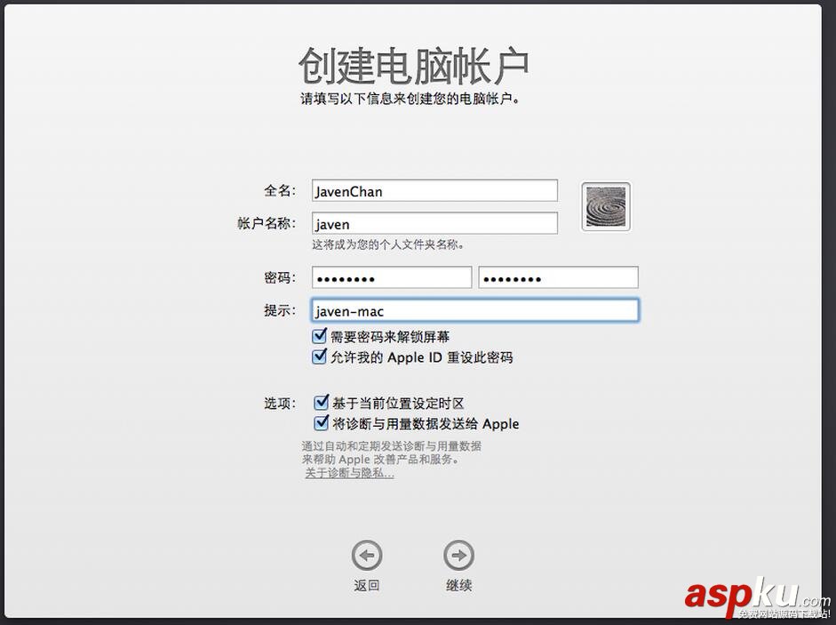 設置安全性與隱私過程中須要多次輸入password。。