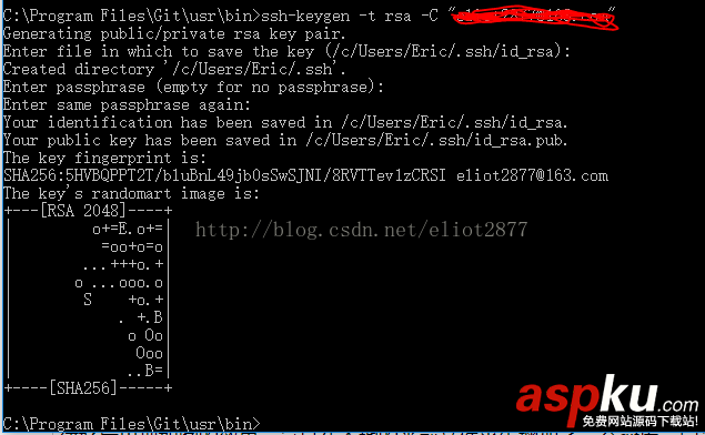 3、打開命令控制臺說著powershell,將當前目錄定位到 ${你的git安裝目錄}/usr/bin,輸入如下命令ssh-keygen -t rsa -C"your_email@example.com",此后,在需要輸入密碼時,可以直接回車,就會忽略連接啟動時的密碼,
