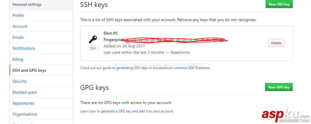 其中id_rsa.pub是ssh的密鑰,將里面的內(nèi)容復制到你github賬號中的sshkey內(nèi),這個設置選項在“ueser-setting”中