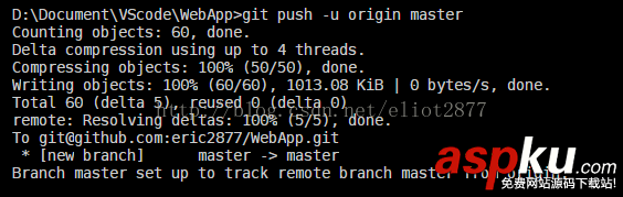 3)輸入推送工作區(qū) git push -u origin master,如果推送成功就會在網(wǎng)站中看到你的項目