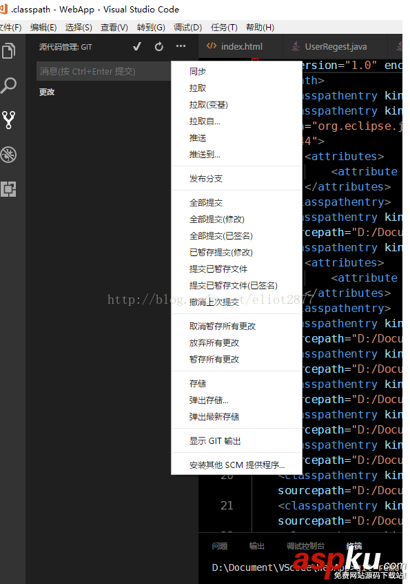 建好后出現(xiàn)如圖的效果,這是在本地的當前文件夾先增加了一個git庫,向這個庫中增加東西,可以采用vscode提供的菜單選項,這里就不再贅述
