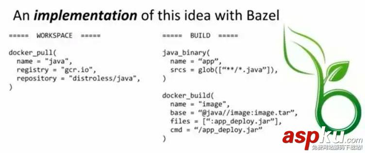 從上圖可以看到,Bazel有 WORDSPACE的概念,WORDSPACE文件用來準(zhǔn)備 Docker鏡像構(gòu)建所依賴的所有材料和來源。BUILD文件用來告訴 Bazel這個(gè)鏡像應(yīng)該使用什么命令進(jìn)行構(gòu)建,以及如何構(gòu)建、如何測(cè)試。